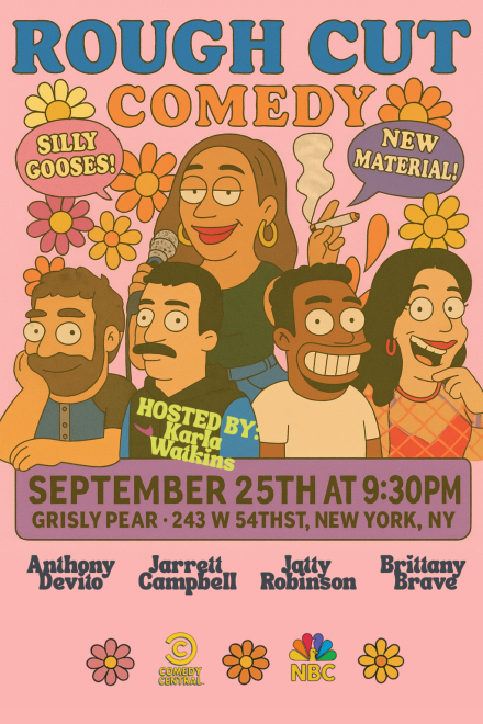 Rough Cut Comedy is produced by comedian Karla Watkins, who’s been curating shows for a few years now (including the long-running Friday Classics), this new monthly series at The Grisly Pear Midtown is all about keeping it loose and letting you peek behind the curtain. It’s a space for some of the best comics in the world to try out new jokes, test wild ideas, and show you what comedy looks like before it’s polished for TV. No pressure, no perfection—just raw, hilarious, in-progress material from world-class comedians known for captivating crowds with their wit and originality.