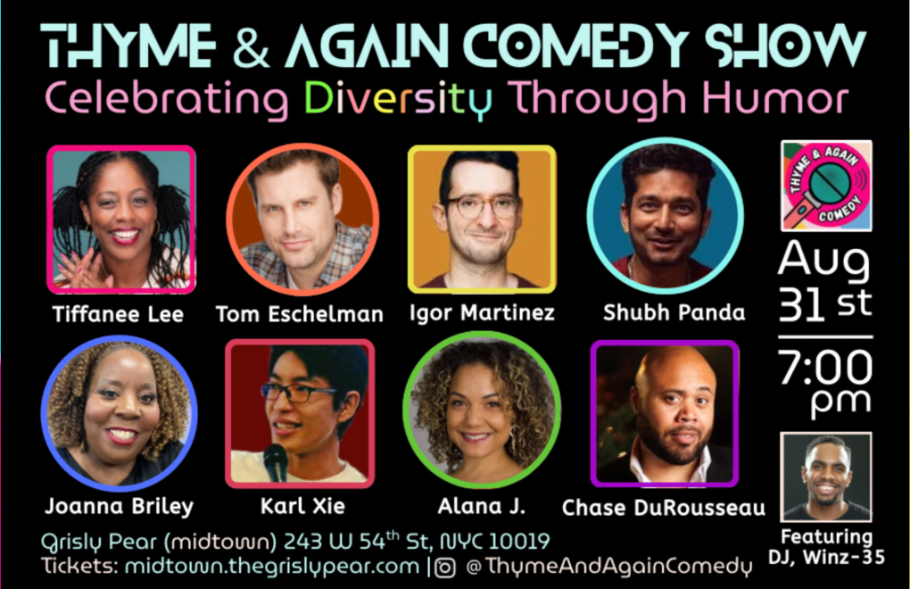Thyme & Again Comedy is bringing the heat with a stacked lineup of NYC’s funniest comics reppin’ cultures from all over including India, Mexico, the Caribbean, China, and right here in the U.S. We’re all about celebrating diversity through hearty laughs and good vibes.